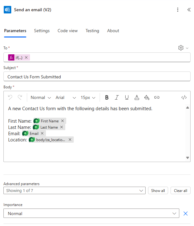 We will then add a Compose action to read the Body message from the above HTTP request.